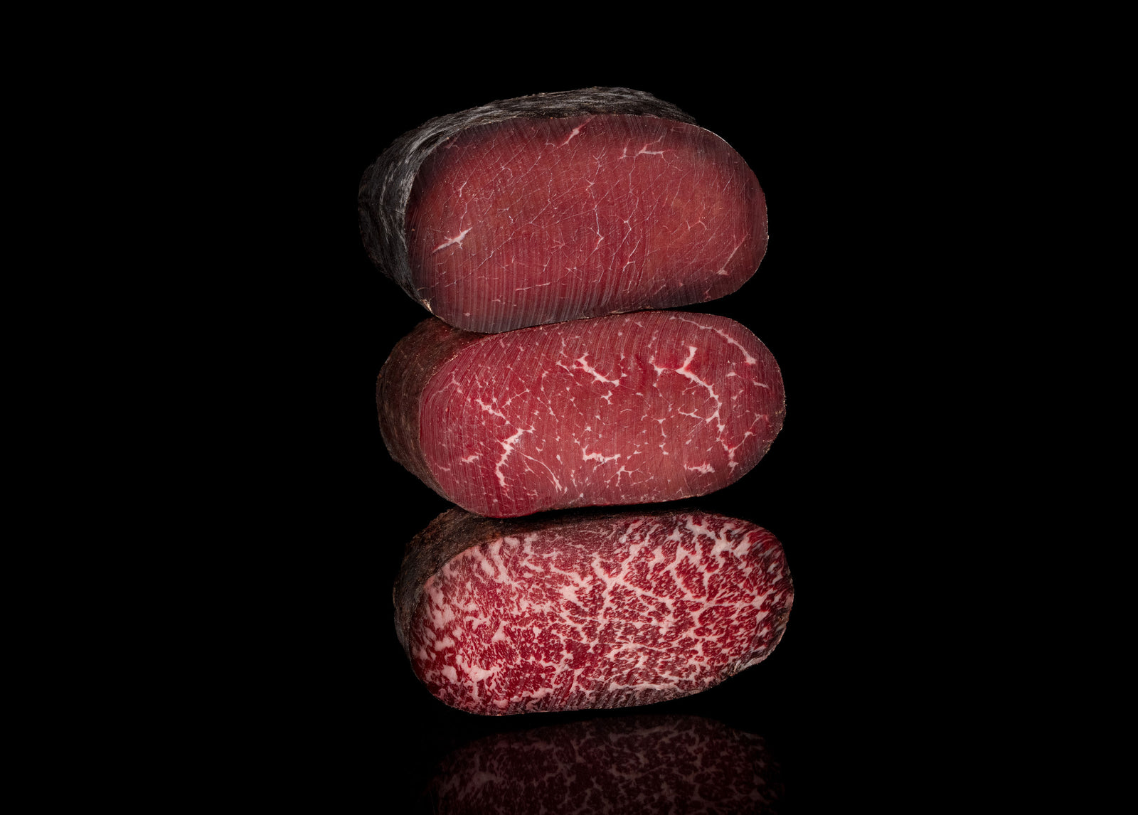 Grazie al brevetto del metodo di produzione, al nostro «savoir-faire» e al tempo dedicato per le lunghe stagionature, utilizziamo le qualità proprie della carne delle singole razze esaltandone profumi e sapori che sono specifici e distinguibili, creando un percorso gustativo emozionante e memorabile.